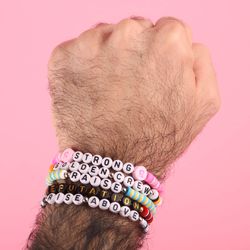 Create your perfect beaded friendship bracelet, where every detail is a reflection of your unique bond. Choose from a vibrant palette of bead colors to match your style or symbolize special meanings. Personalize the message with names, dates, or heartfelt words, making it a truly one-of-a-kind piece. Crafted with care, this bracelet celebrates friendship in a way that's as unique and beautiful as the relationship it represents. Perfect for gifting or sharing with your best friend!