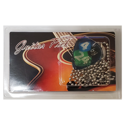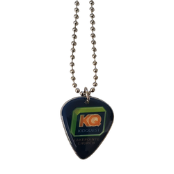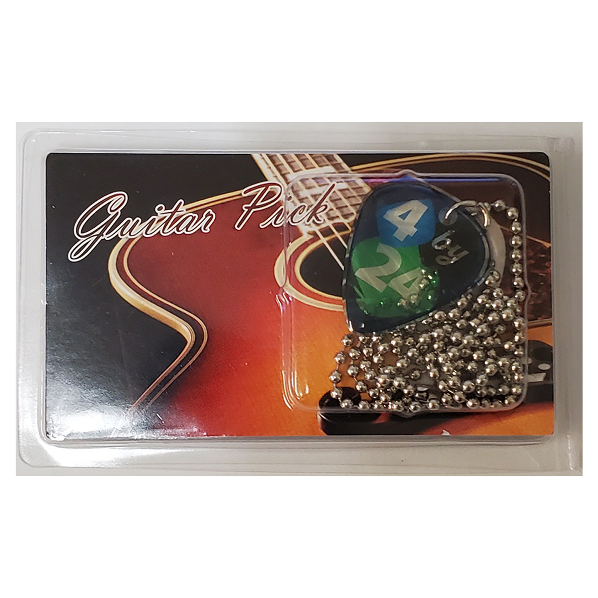 Custom Guitar Pick on ball chain necklace, with single sided full color translucent imprint that is seen from both sides of the guitar pick and the imprint will not fade or wear off with your choice of 24" or 30" ball chain necklace. Offers longer pick durability and better sounding tone. Excellent for band merchandise, music events, event sponsors, souvenirs or trade show gift. Comes in your choice of Executive Style Clamshell or Zip Lock Bag packaging.