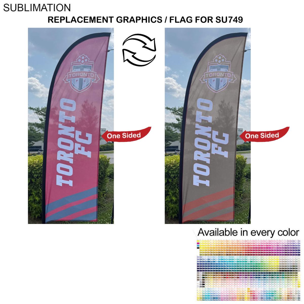 Out with the old, in with the new with replacement graphics. Replacing Graphics takes seconds and is convenient. one-sided graphic cover is viewable from the front of the display for the visibility. Hardware and carry bag not included. Fabric Flag Includes Full color, High resolution Sublimation printing on 1 side. Graphics are printed on a premium 110 gsm polyester fabric. Usage: SALE sign, Grand Opening Sign, Warehouse Sales, Business location, Front of Building , Attracting attention, Pop up Stores, Events, Offices, Open House. Price includes full color graphics on One Side. Max Imprint: 22.4" x 72"L.